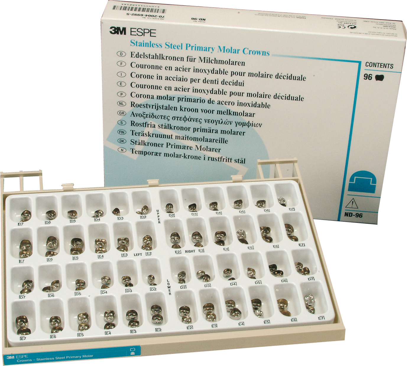 • Estojo com coroas molares primárias em aço inoxidável da 3M ESPE
