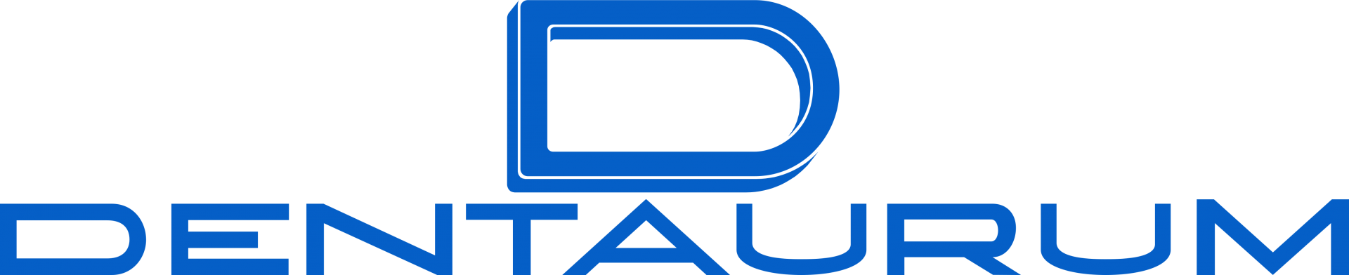Logotipo azul da marca DENTAURUM com símbolo 'D' estilizado