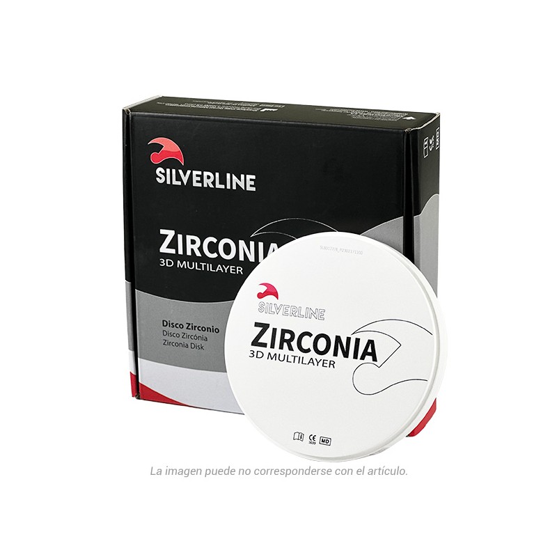 Caixa do produto SILVERLINE ZIRCONIA 3D MULTILAYER com disco branco em frente