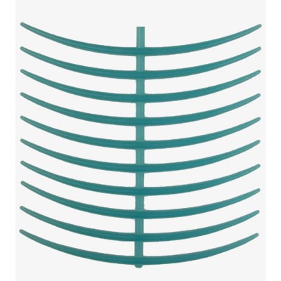 Peça plástica verde com barras arqueadas em fundo branco