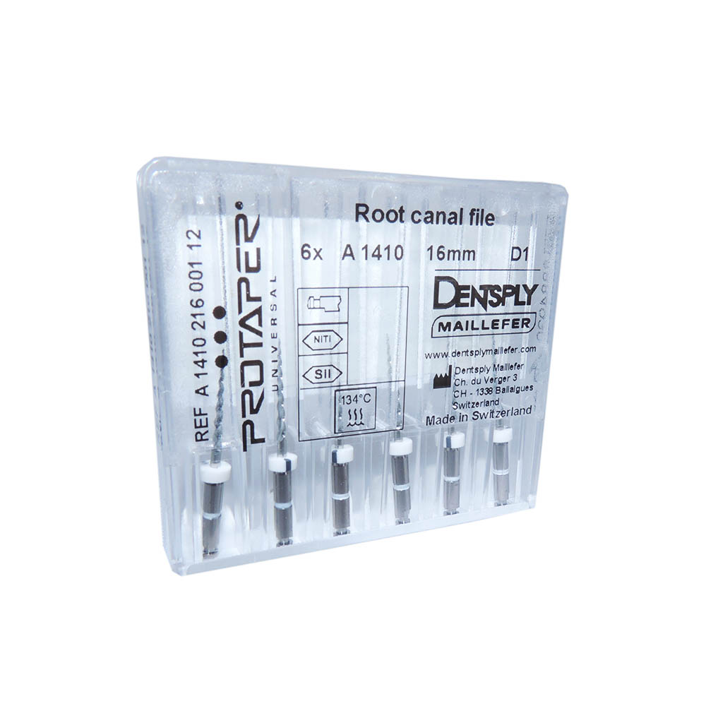 • Pacote transparente com 6 limas para canal radicular Dentsply Protaper.
