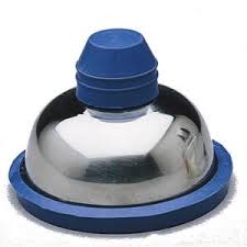 • Ferramenta de cozinha metálica e azul com base arredondada
