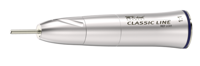 • Instrumento dentário metálico prateado com texto CLASSIC LINE REF L001 1:1