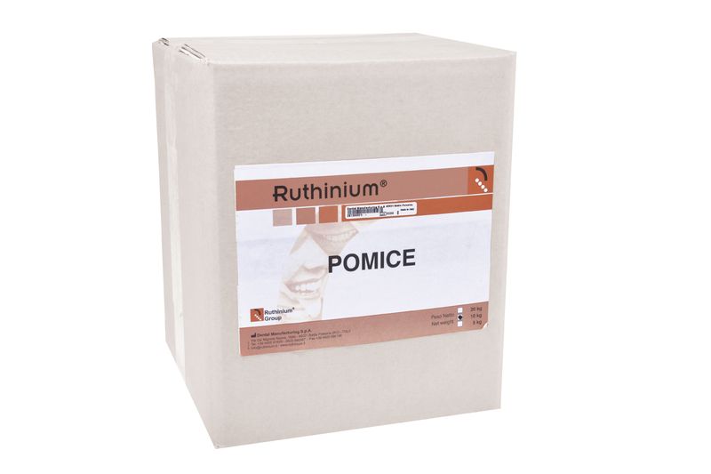Caixa branca com etiqueta 'Ruthinium POMICE'