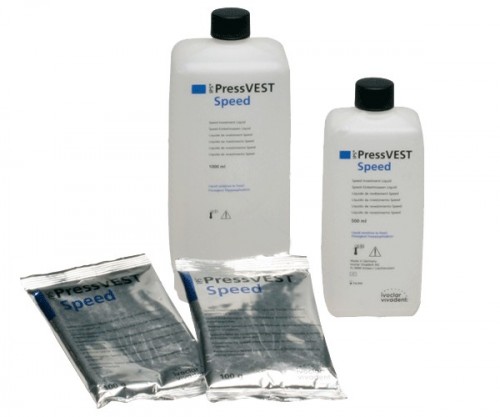 • Embalagens do produto PressVEST Speed em garrafas brancas e sacos prateados
