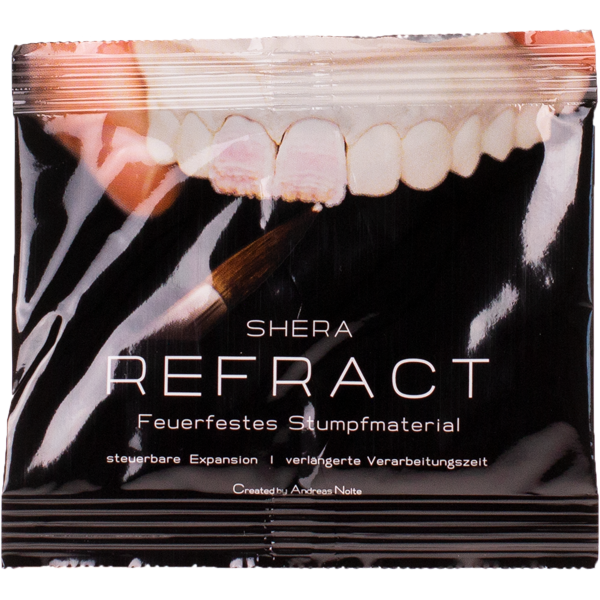 • Black resealable bag with teeth image and SHERA REFRACT label