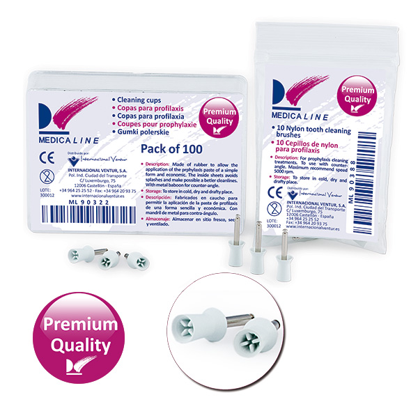 Copos para profilaxia em borracha com suporte metálico em embalagem plástica